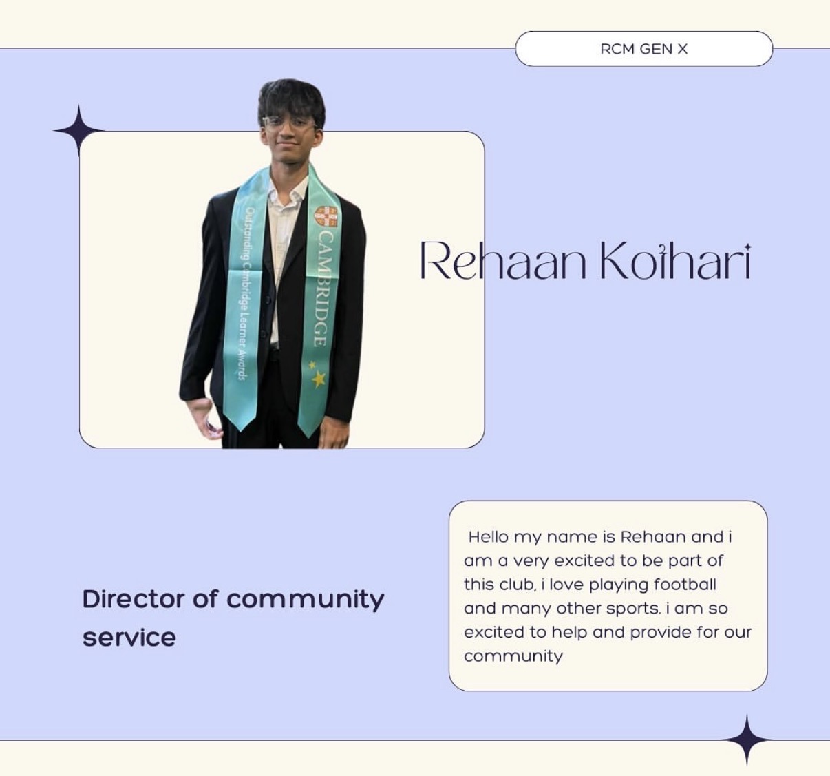 As an IBDP student, I have always been actively involved in community service and social initiatives. Serving as the Director of the Rotary Interact Club of Mumbai GenX, I have had the opportunity to lead and contribute to various projects that focus on emotional, psychological, and mental health awareness among youth. Our club regularly organizes sessions and discussions that encourage people to speak openly about mental health and build a supportive community around well-being. Beyond that, we also engage in social awareness and environmental causes, especially during Ganesh Chaturthi, where we promote the idea of eco-friendly celebrations. Instead of immersing idols in the sea, we set up artificial water tanks for visarjan to protect marine life and prevent water pollution. Through these initiatives, I have learned the importance of compassion, teamwork, and sustainable living, realizing that meaningful change begins when awareness is transformed into action.